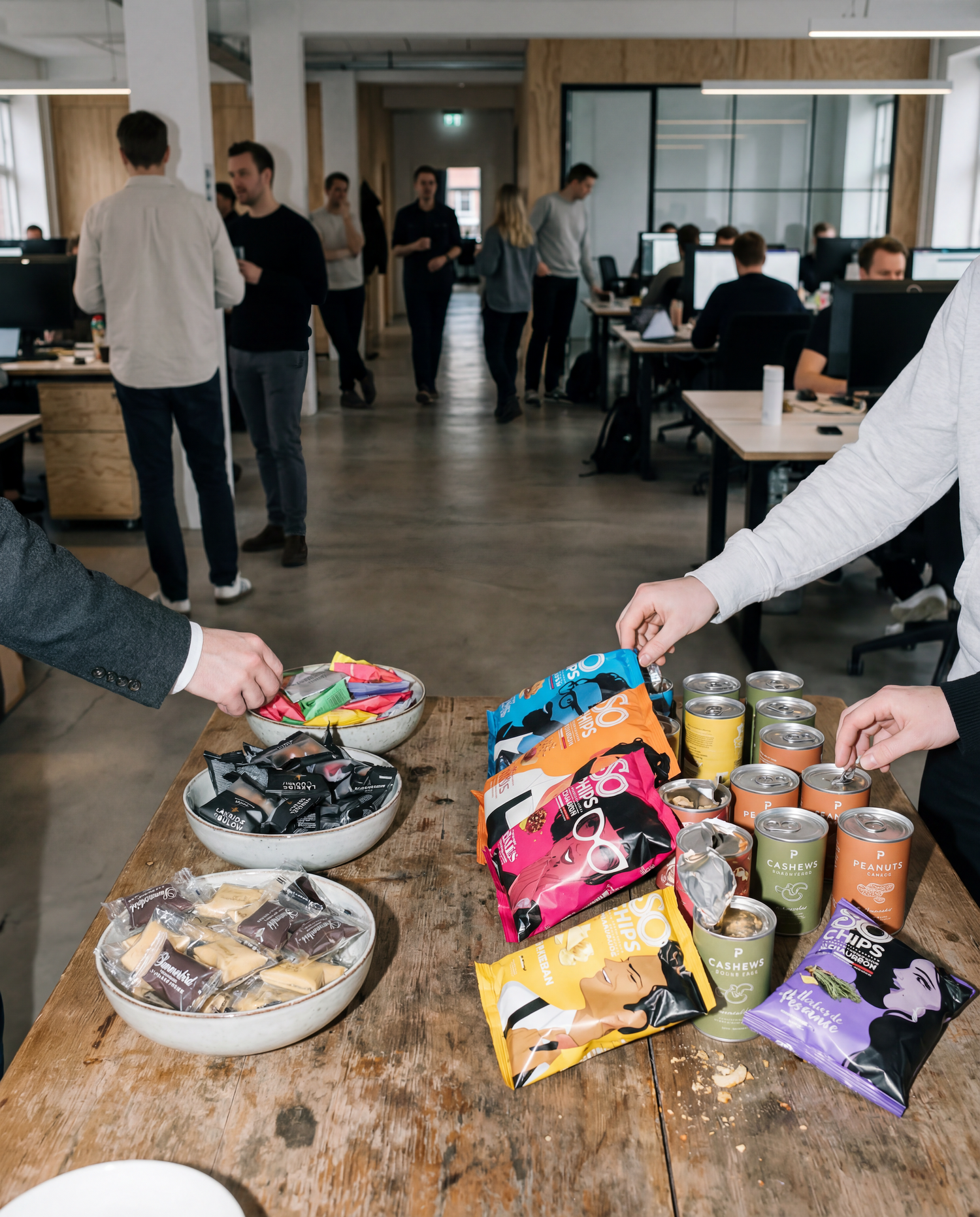Med vores medarbejderkasse forkæler I medarbejderne med en nøje sammensat blanding af sødt og salt i højeste kvalitet. Perfekt til at stille frem på kontoret efter frokost eller ved fyraften. Leveres direkte til virksomheden, pakket og klar til at sætte frem og nyde sammen.